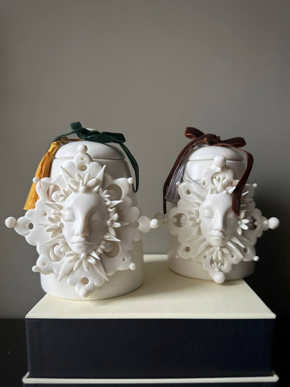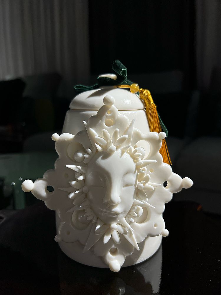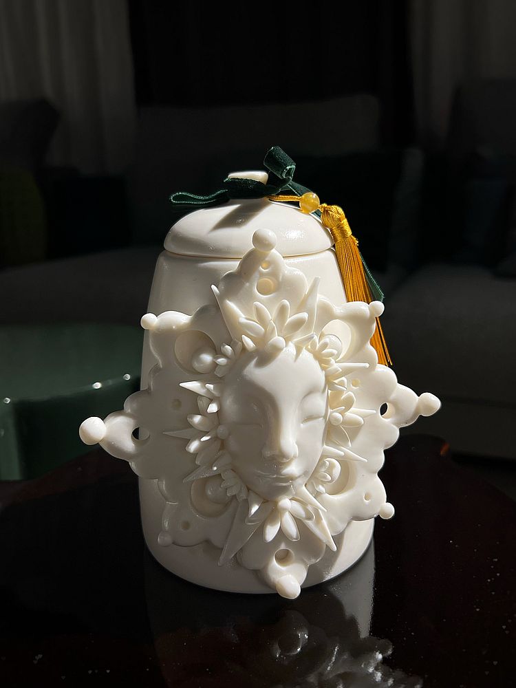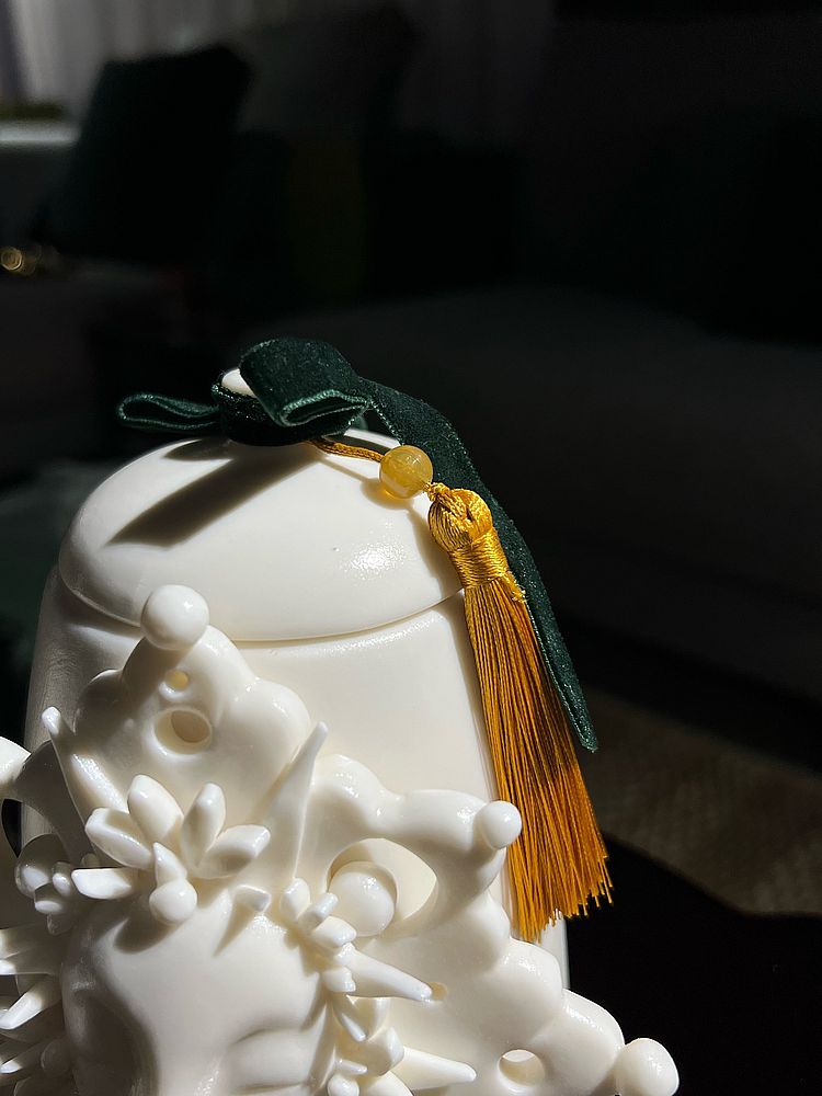 Керамическая шкатулка с крышкой и зеленой лентой, автор - A. Kruglikova