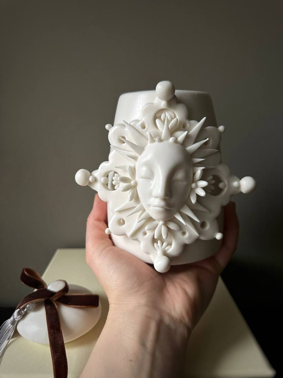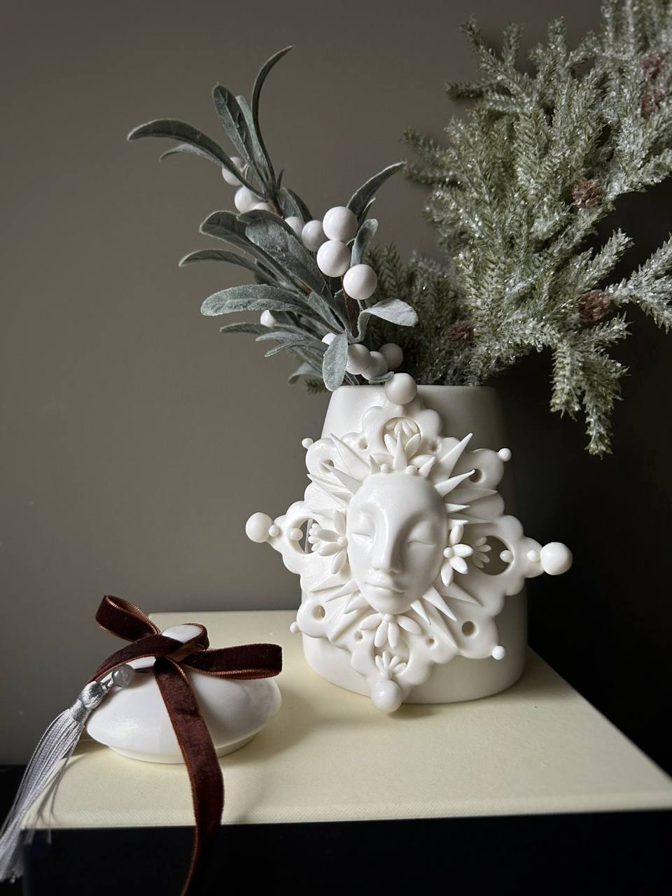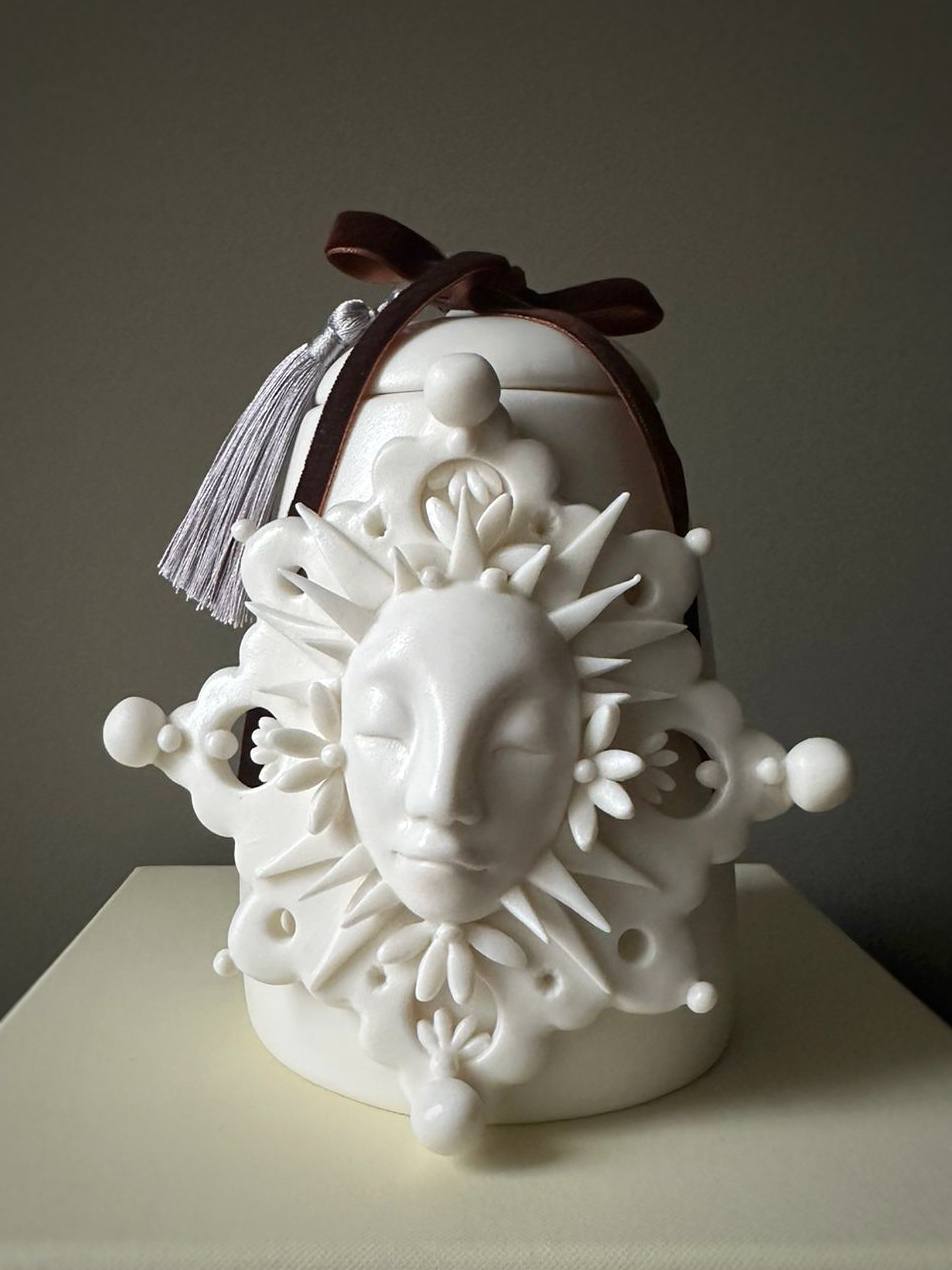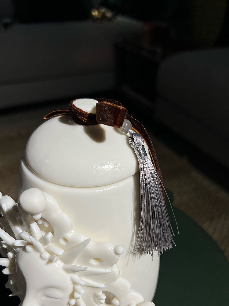 Керамическая шкатулка Снежинка с крышкой и корчневой лентой, автор - A. Kruglikova