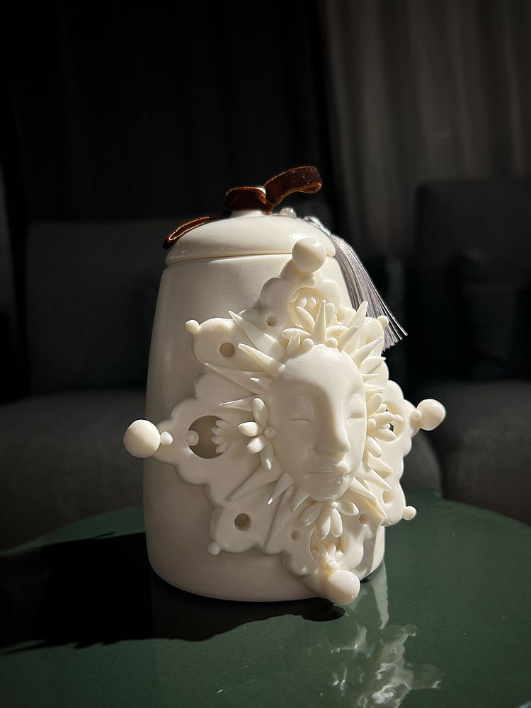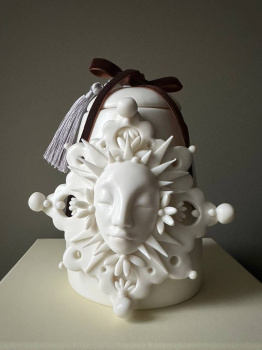—Керамическая шкатулка Снежинка с крышкой и корчневой лентой, автор - A. Kruglikova